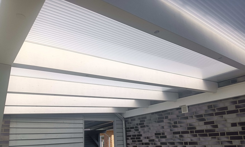 16 mm R.GLAS® Acrylglas-Stegplatte, 32 mm Stegabst., Opal-Weiß, Struktur 2-fach
