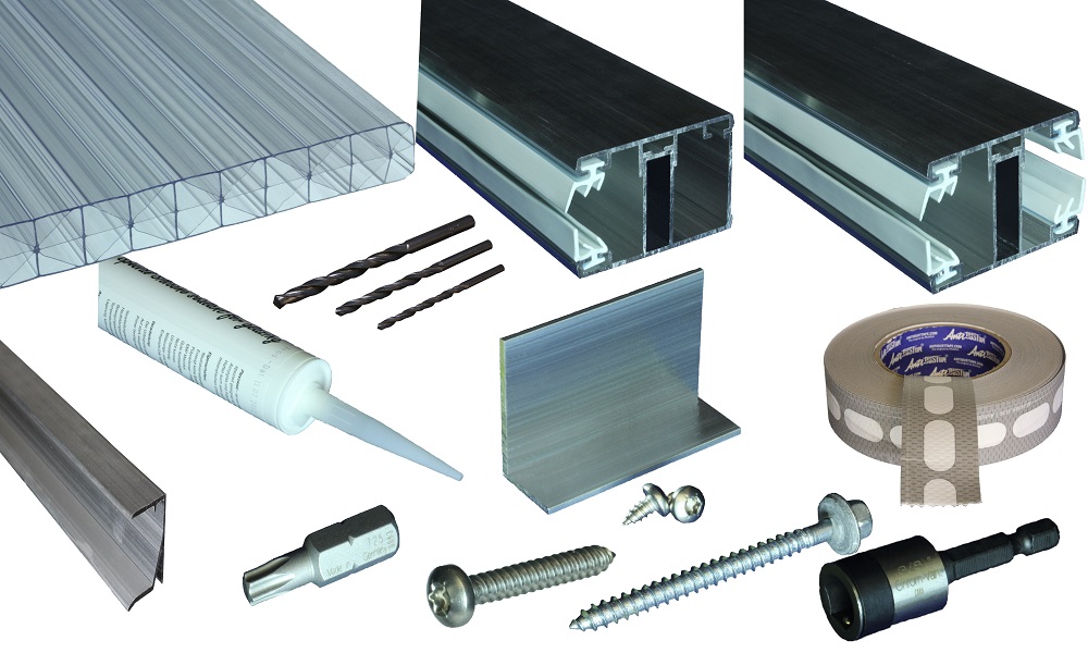 Dieses Set ist zusammengestellt aus 16 mm Stegplatten aus Polycarbonat in Glasklar, allen Alu/Alu Rand- und Verbindungsprofilen den dazu gehörigen Schrauben aus Edelstahl in ausreichender Menge inkl. dem passenden 3/8“ Steckschlüssel und Biteinsatz.