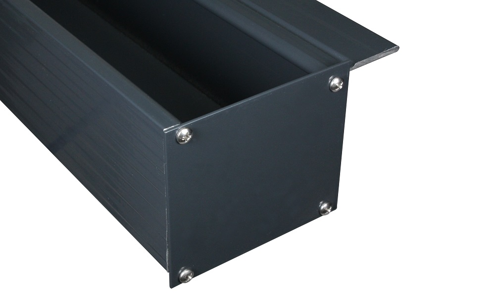 Bestehend aus: 2 Stück Kastenrinnen-Endkappen aus Aluminium in Anthrazit und 8 VA-Schrauben