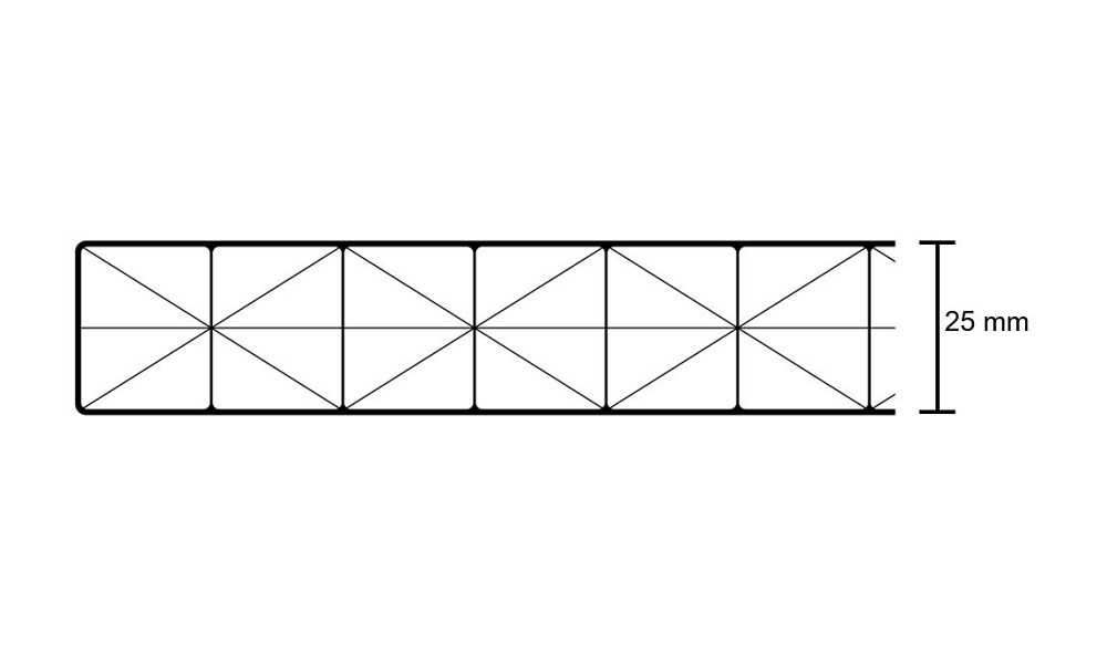 25 mm Stegplatte aus Polycarbonat, Glasklar, Struktur 3-fach + X